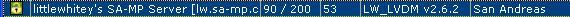 Une capture d'écran montrant le navigateur de SA:MP, avec le très populaire serveur de littlewhitey pouvant accueillir 200 joueurs.