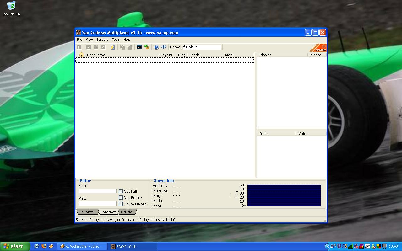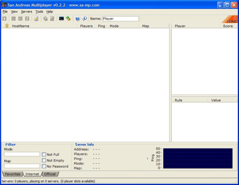 - (del) (rev) 14:52, 24 March 2007 . . F3llah1n (Talk) . . 1280x800 (99621 bytes) (What will happen if your firewall is blocking SA:MP, or if the Master Server is offline. More than likely the former.)