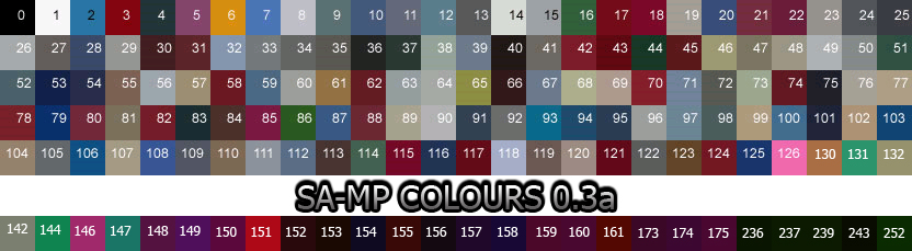 - (del) (cur) 22:13, 1 May 2010 . . Mitchellj (Talk) . . 832x247 (154611 bytes) (A newer up to date image of the sa-mp colors made by me.)
